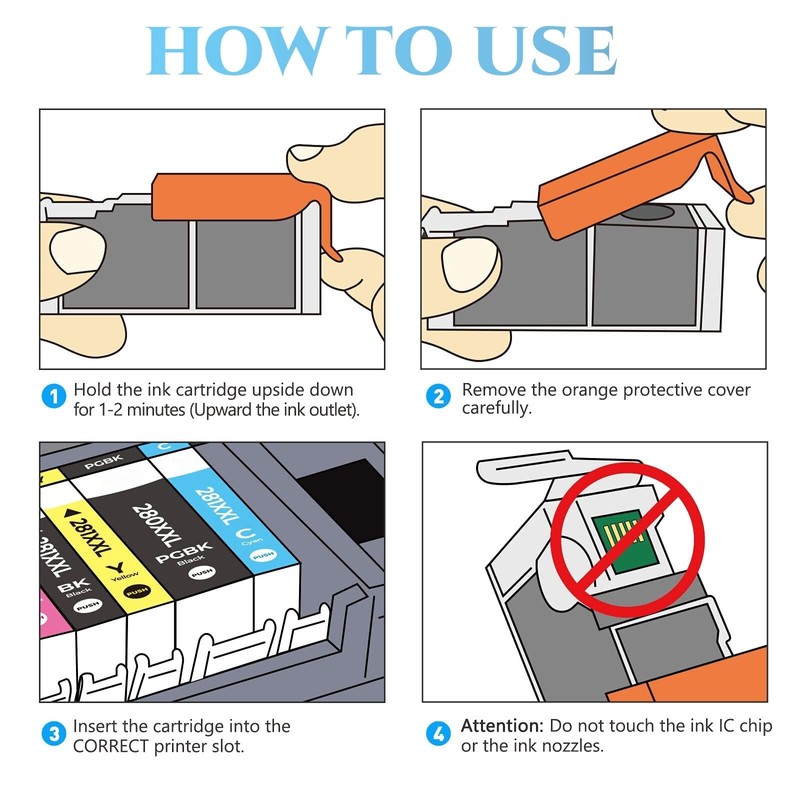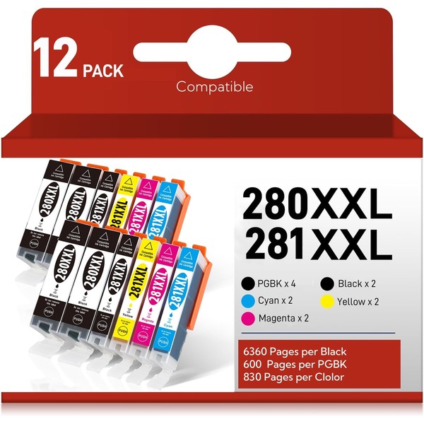 - 【Package Content】 4 x Large Black 280xxl, 2 x Small Black 281xxl, 2 x Cyan 281xxl, 2 x Magenta 281xxl, 2 x Yellow 281xxl (NOT Include Photo Blue)12Pack super high yield ink