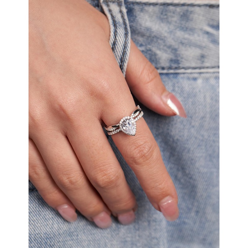 - Perfect Alternative & Stackable Ring: A great substitute for your real diamond ring, our white gold twisted ring can replace a diamond ring when traveling, working, or going out to show your status while retaining the sparkle of a diamond one. It is a perfect matching band to wear besides your engagement ring or separately.