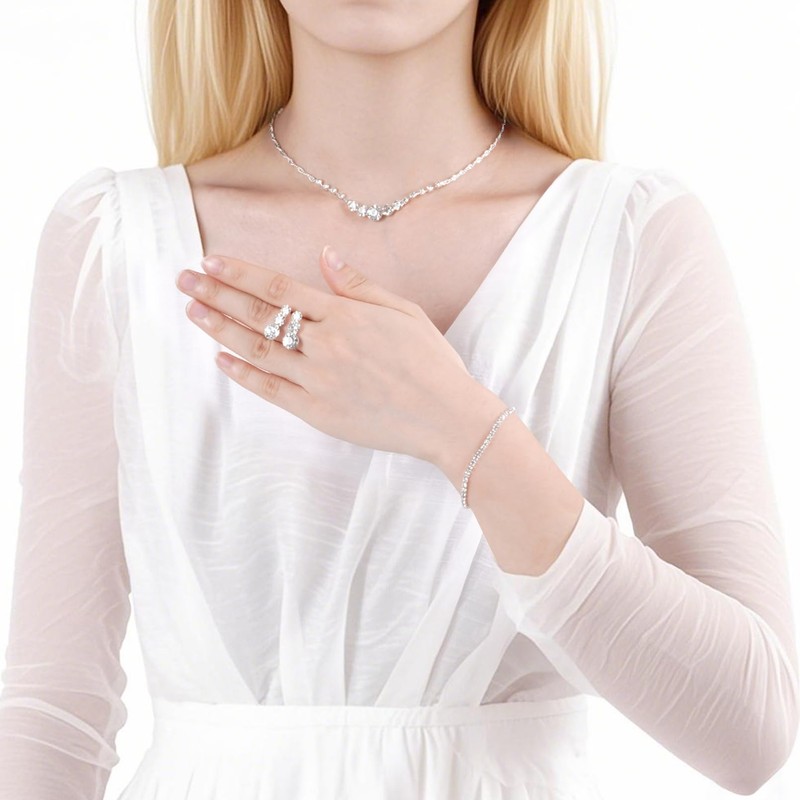 - Easy to Match: Effortlessly complements wedding gowns, evening dresses, or cocktail attire. The timeless silver tone enhances formal jewelry for women evening wear, while the subtle sparkle elevates silver prom jewelry set looks for glamorous occasions