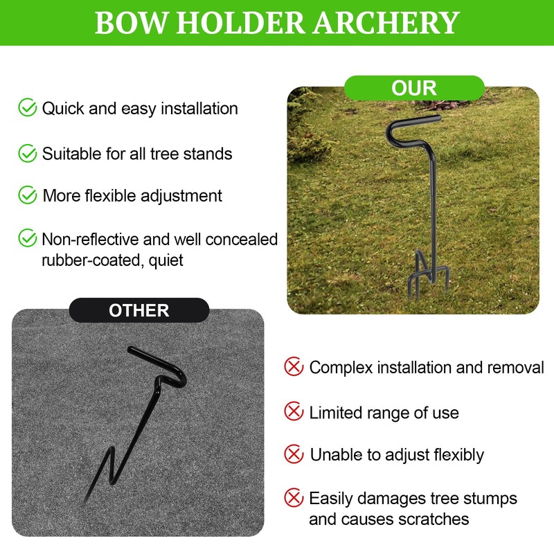 2. Comprehensive Protection: Highly elastic rubber wrapped ground bow stand, not easily rusted, anti-scratch and wear-resistant, U-shaped groove firmly clamped to the bow body, avoiding valuable arrows from slipping or bumping damage.