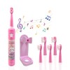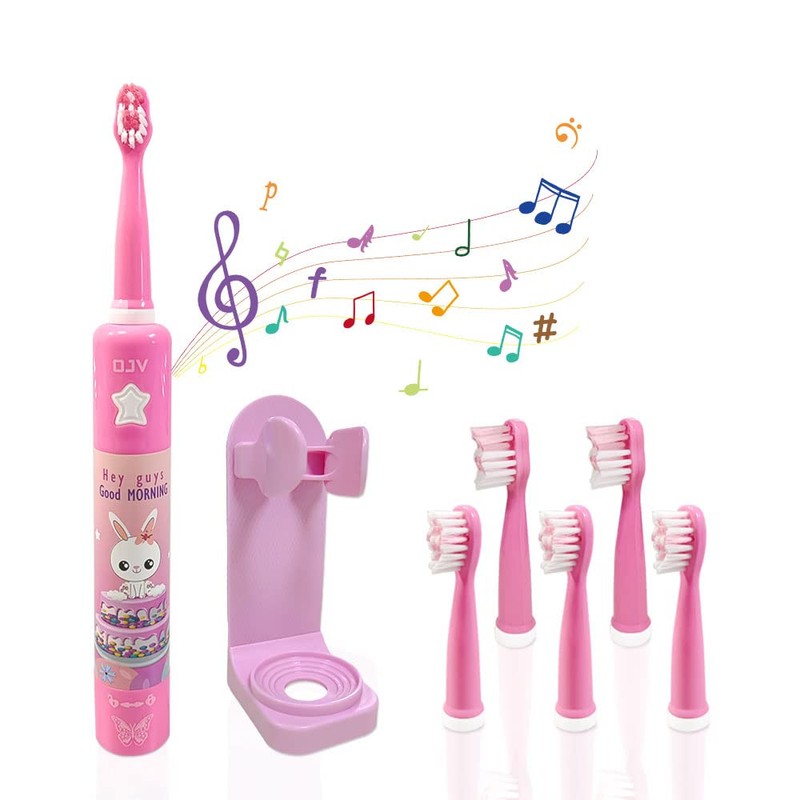 OJV 8620 Musical Electric Toothbrushes for Kids Children, 3 Modes 2 Min Timer, 6 Bristles Rechargeable Power Smart Sonic Music Play Song Toothbrush for Girls Age 3-14 with Wall Mounted Holder (Pink)