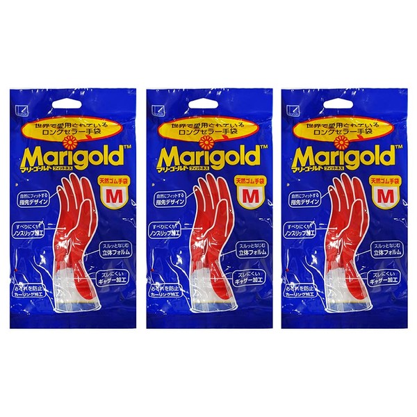 Okamoto Gloves, Marigold Rubber Gloves, Kitchen Gloves, Set of 3, Size M