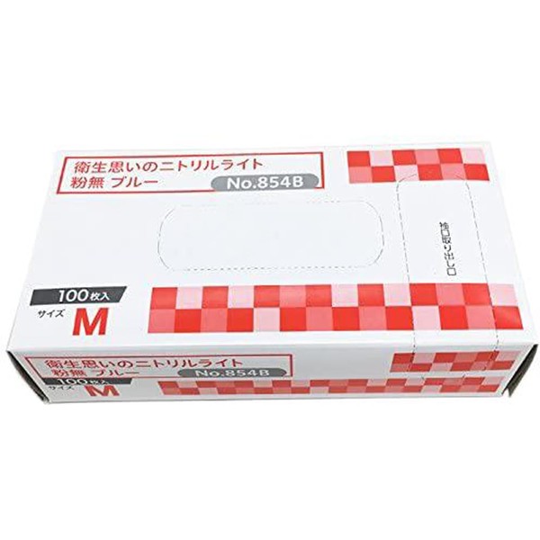 Okamoto Hygienic Nitrile Light, Blue, Powderless, M, 1 Small Box (100 Pieces)