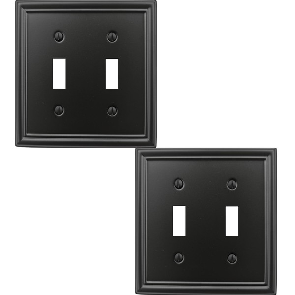 OKAWYC Double Toggle Light Switch Cover Luca Metal Wall Plate, 2-Pack Black 2 Gang, Light Switch Cover Decorative Wallplate, Durable