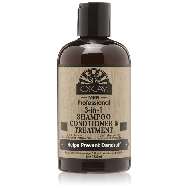 Okay 3 In 1 Men Shampoo Conditioner Treatment, natural scent 8 Ounce