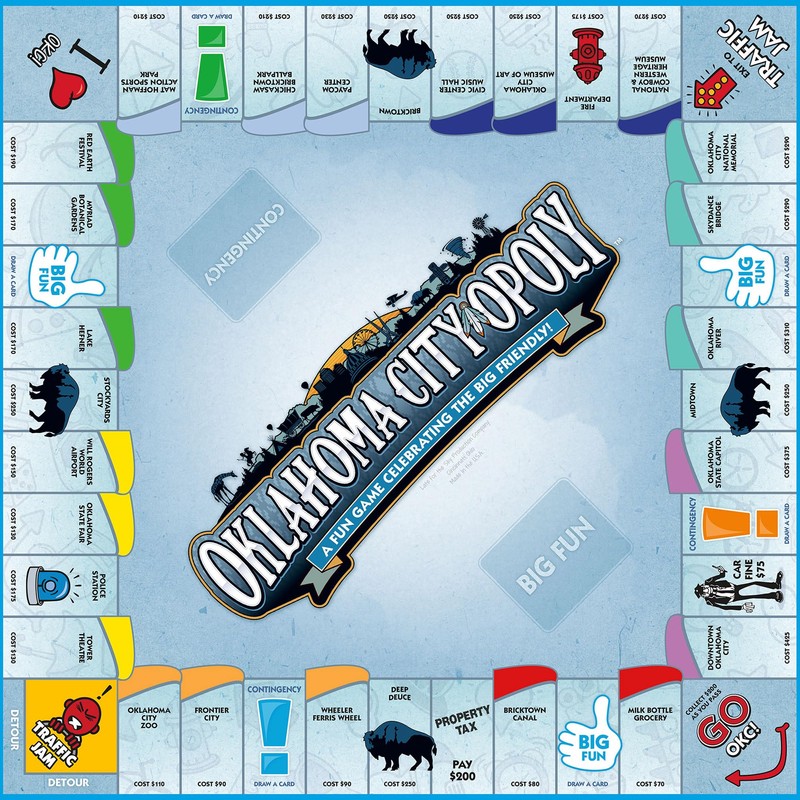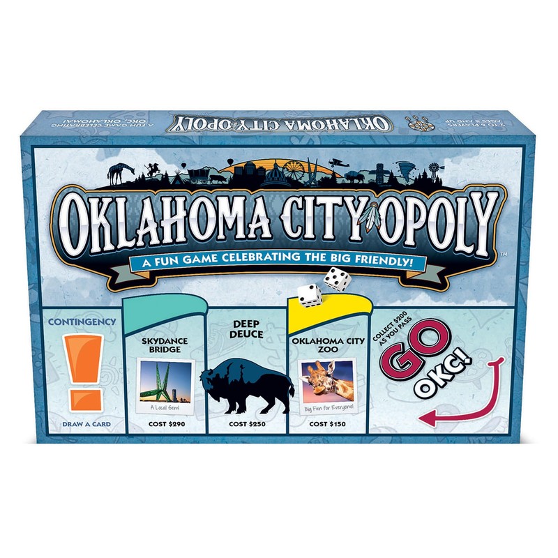 - THEMED OPOLY Strategy board game. A fun game celebrating the beautiful Oklahoma City. Engaging & Educational.