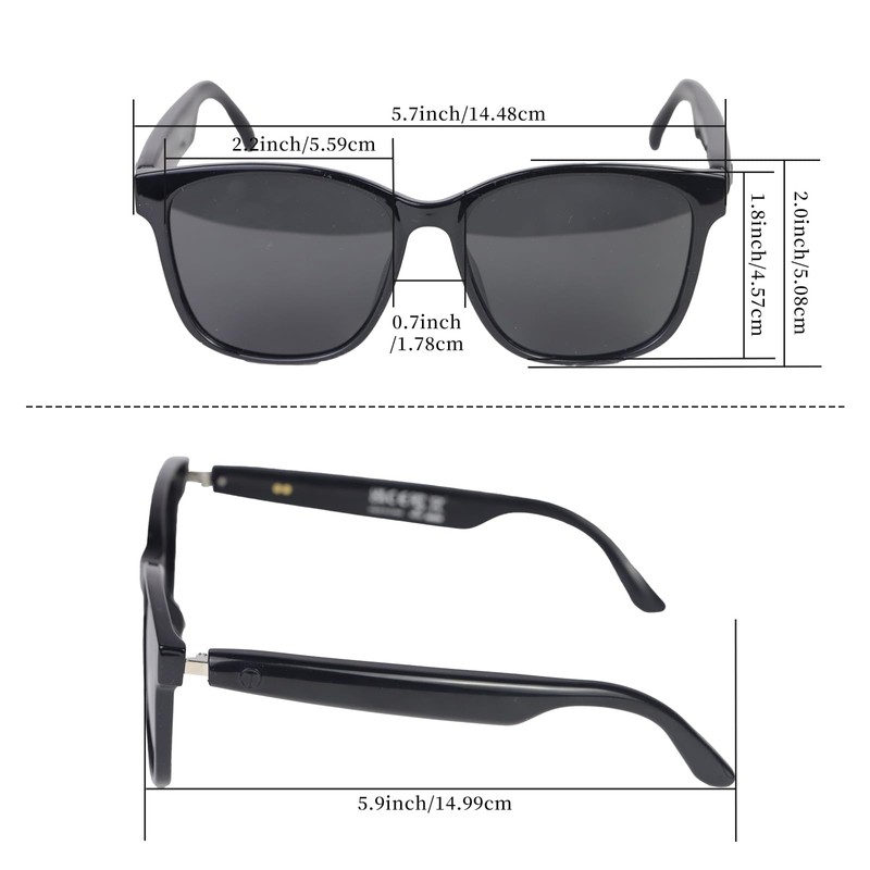- Your Fashion Item: This bluetooth glasses are fashionable and well-matched, you will look stylish every time you dress up and wear them, plus the polarized lenses can protect your eyes in the scorching sun, and they are also IPX5 waterproof and sweatproof, weighing only 34g, so there is no problem to wear them even in work/driving/outdoor sports.