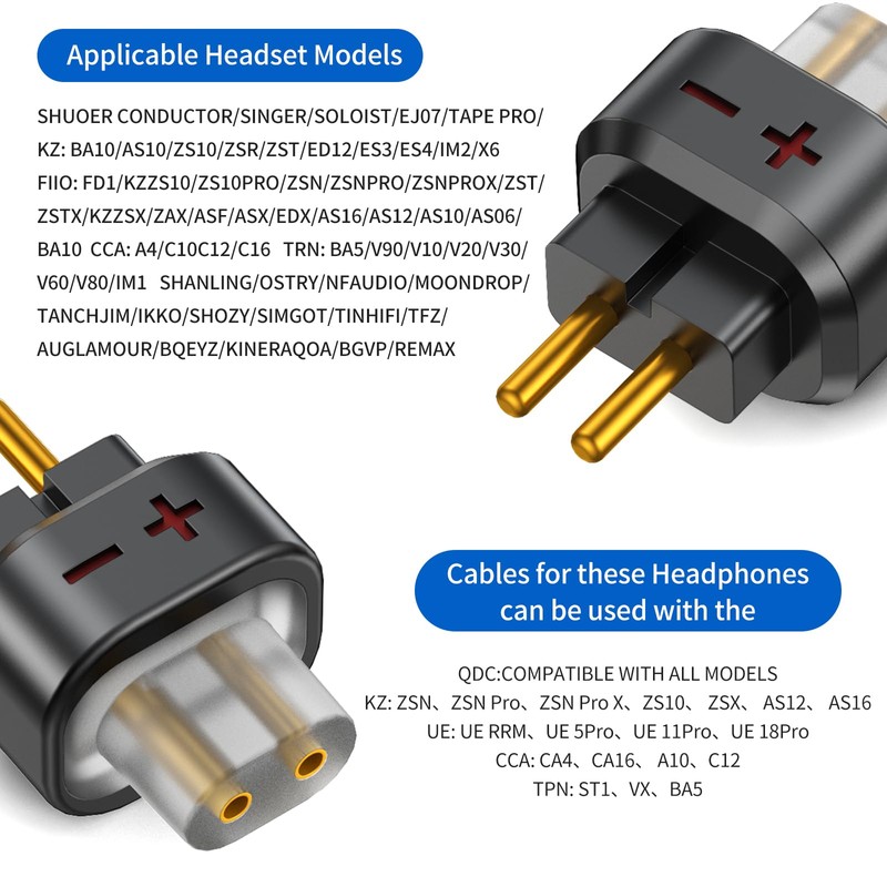 - Female Side QDC 2pin plug: This convert is worked for QDC 2pin cable connected with different 0.78 2 Pin earbuds