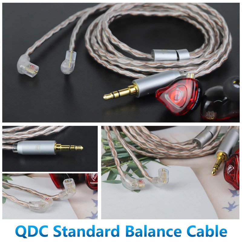 - Raw Material & Design Concept: This cable is a 4-core upgraded cable for QDC to 2.5MM/3.5MM/4.4MM plug models. Gold-plated plug design, pure copper separator, plus ear-mounted hook design. The cable is made of high-purity oxygen-free copper, providing a sharper bass response through higher linearity and resolution.