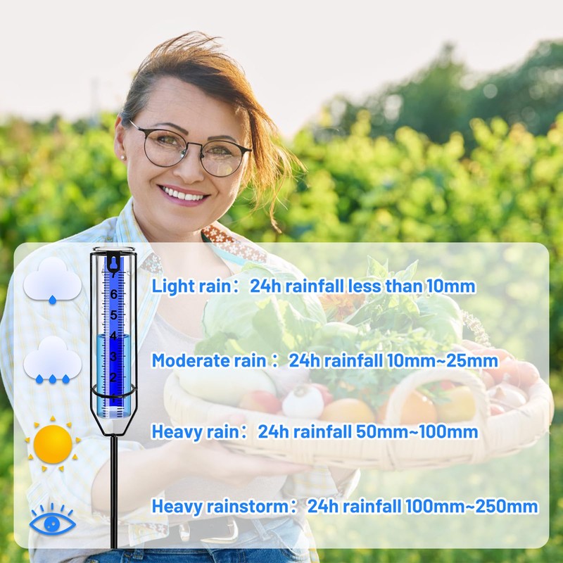 - Easy installation: Simply connect and tighten the three metal parts to complete the installation of the rain gauge.Rain gauge for garden can be easily installed in the soil of the garden.