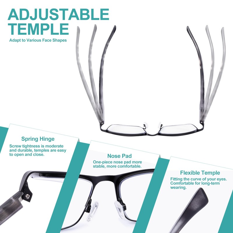- 【Sturdy & Lightweight Metal Frame】Quality ultra-light frame with spring metal hinges make them sturdy yet they have a very comfortable fit. No pressure to wear and flatter every face shape for women and men to use.