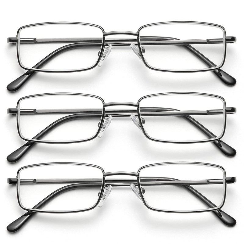 OKH 3 Pack Stainless Reading Glasses 2.0, Metal Frame Blue Light Blocking UV Protection Readers for Men