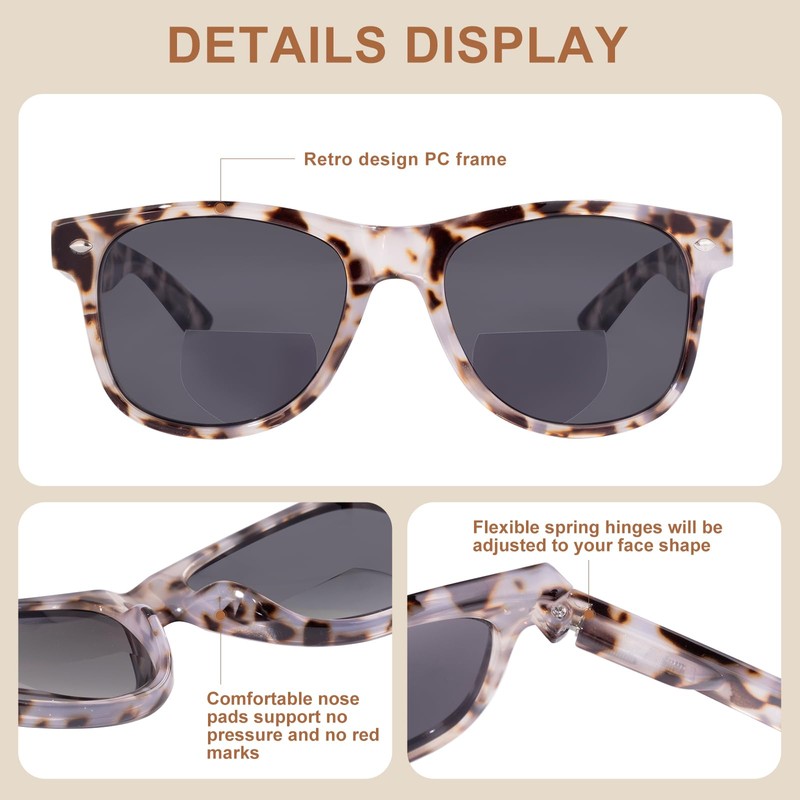- Bifocal lenses: Bifocal lenses allow our readers to offer high versatility. Combine sunglasses with reading glasses. Perfect for outdoor reading and distance observation. Sunglasses with bifocal readers are comfortable. It is multifunctional, you don't have to wear multiple pairs of glasses and also save money.