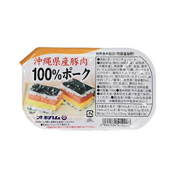 - Ingredients: Pork (from Okinawa prefecture), pork fat (from Okinawa), protein hydrolyze, sugar, pork extract powder, yeast extract, sodium casein, sodium phosphate, antioxidants (vitamin C), seasoning (amino acids, etc.), coloring agent (sodium nitrate), (some of the raw materials include milk ingredients, pork)