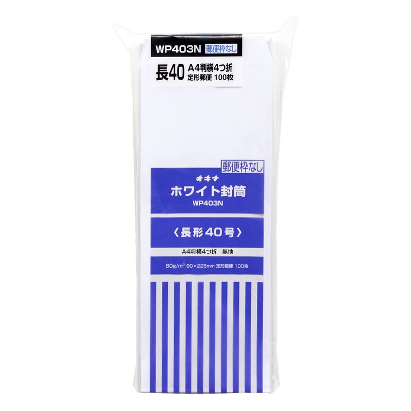 Okina WP210 White Envelopes, Rectangular No. 4, w/ Boxes, Pack of 100, 2.8 oz. (80 g), whites
