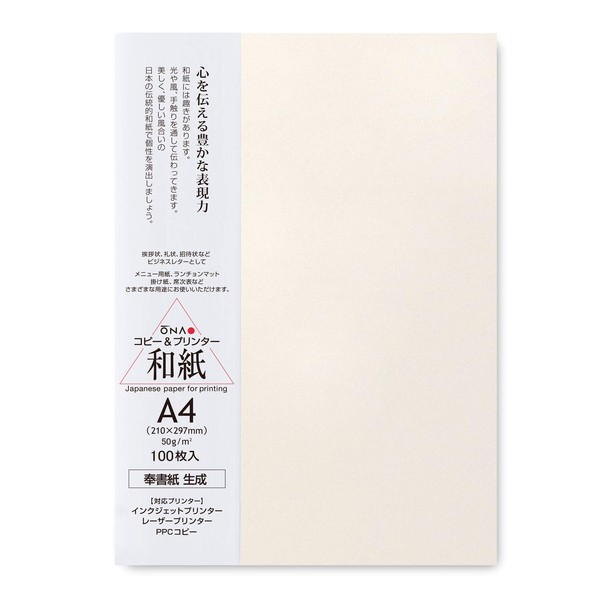 Okinao Copy Paper, Washi Print, Inkjet, Laser Printer, Plain, A4, 100 Sheets
