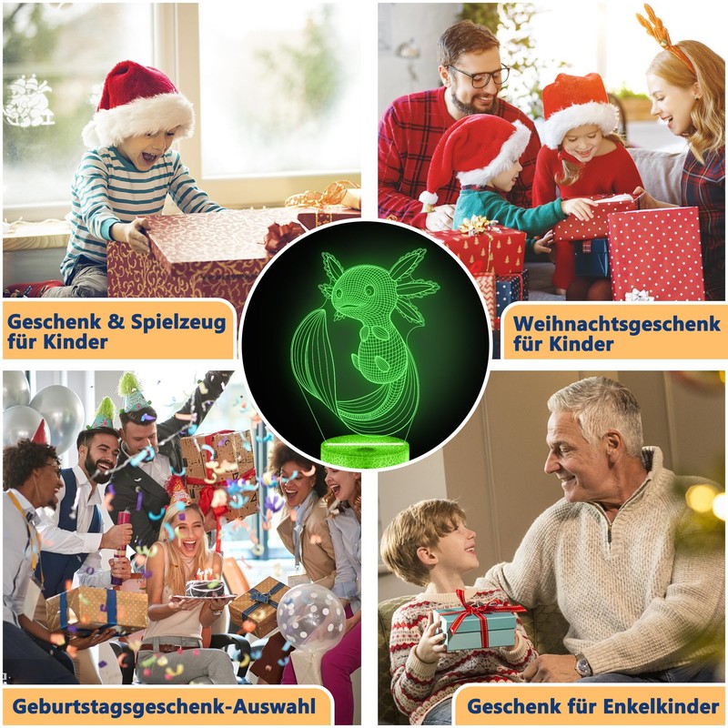 OkiyiD Axolotl Night Light, Axolotl Gift with Remote Control + Touch 16 Colour Flash Change + Timer Children's Room Decor Best Festival Birthday Gifts
