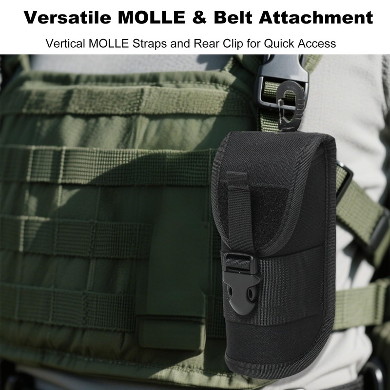 - Multiple Mounting Options: Equipped with vertical MOLLE straps and a rear plastic clip, this molle eyeglass case easily attaches to belts, vests, or modular MOLLE bags, providing quick and convenient access to your glasses during outdoor activities or daily use