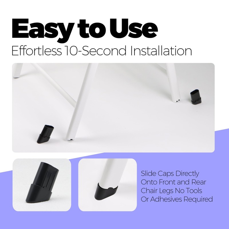 - Effortless 10-Second Installation - Slide caps directly onto front and rear chair legs no tools or adhesives required