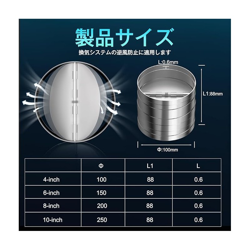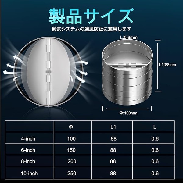 - Installation Method & Reverse Wind Prevention: Installation Method: The shaft of the reverse airflow prevention valve is installed vertically in the ground. This product is made of galvanized steel, which is durable and lightweight, automatically opens and closes with exhaust wind, allowing dirty air to escape the building, preventing outside dust and insects from entering