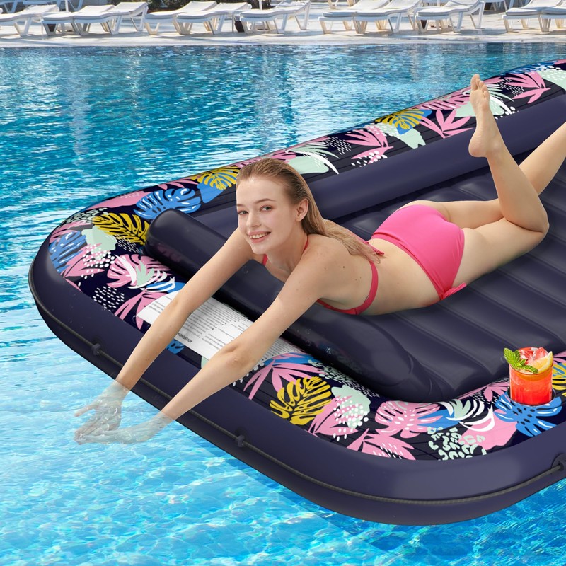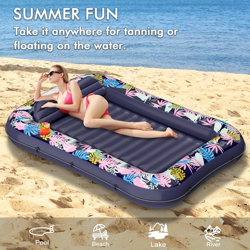 - Spacious & Comfortable for Multiple People:The Inflatable Tanning Pool Lounger (49.21" x 72.83") fits multiple people comfortably.Ideal for sun tanning,this pool floats offers fun water play in your garden or backyard for the whole family and pets