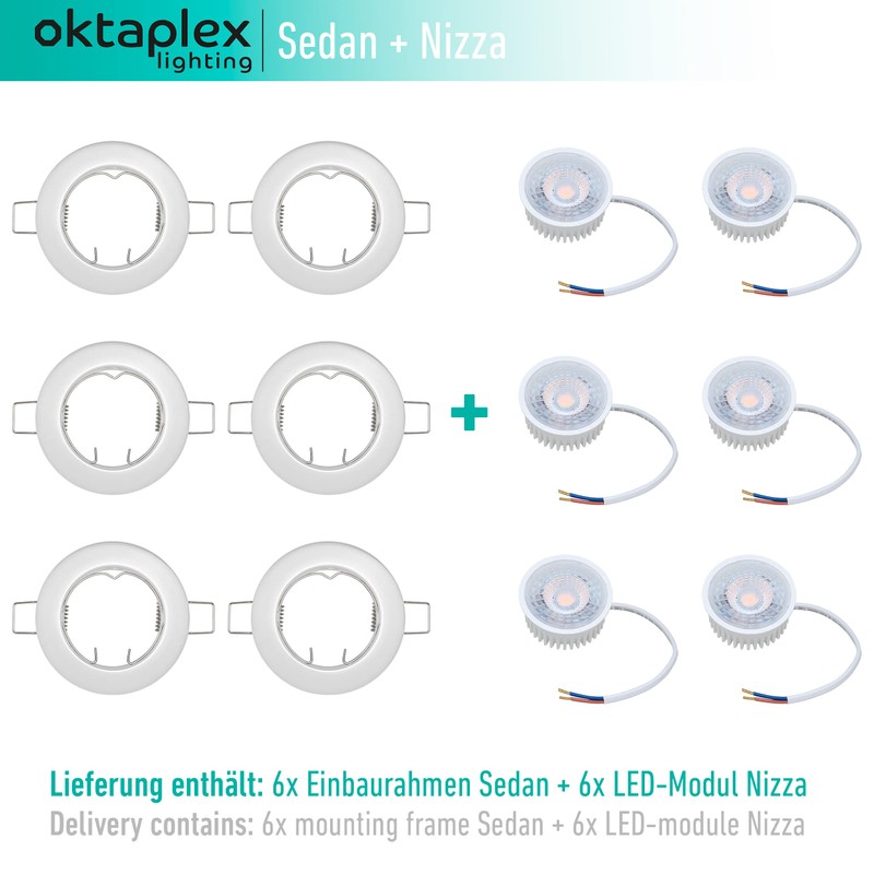 - Box contents: the set contains 6 x mounting frames Sedan white and 6 x LED module Nice 2700 Kelvin.