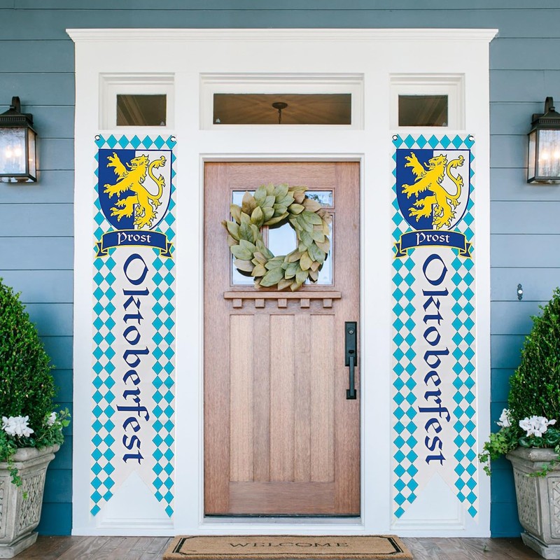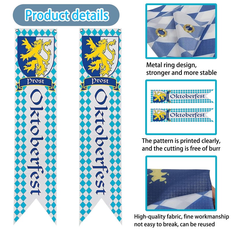 - Cheers Oktoberfest: Classic Bavarian style, classic Bavarian powerful lion, the perfect combination of blue and white, collision of beer glass and beer glass. The decoration of the Oktoberfest with our banners creates a cheerful Oktoberfest atmosphere, toast this special day with family and friends