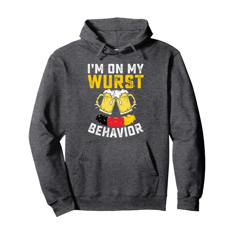 - I'm On My Wurst Behavior, Get this fun I'm On My Wurst Behavior beer mugs and sausage in German flag colors, Perfect for Octoberfest last minute dress up, beer lovers who enjoys Oktoberfest puns jokes, Anyone with German heritage or roots, Make friends LOL
