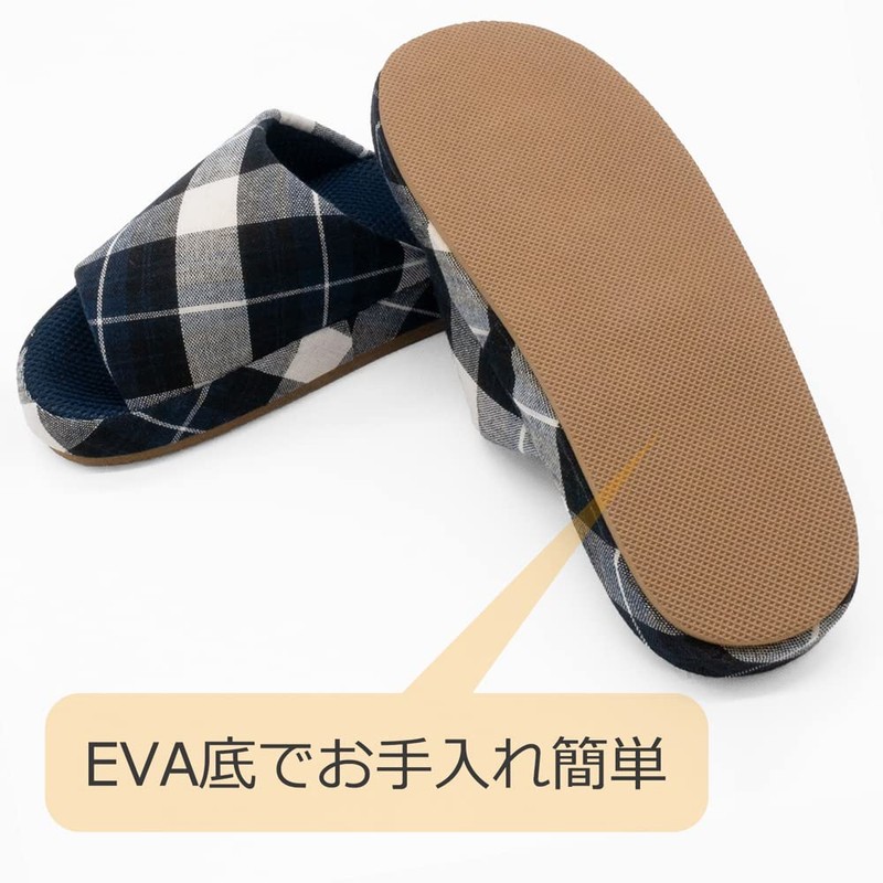 Okumura AAAAAA6910 BL Slippers, Sole, Acupuncture Point, Open Front, Mesh, Comfort, L Size, Blue Tartan Check