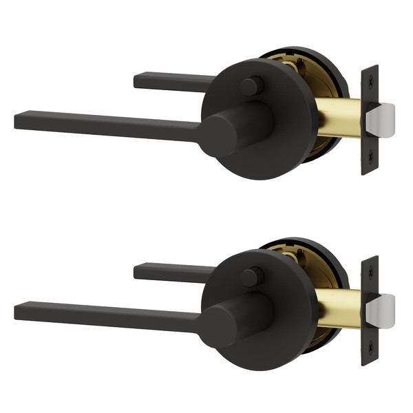 Okun Muse 2-Pack Matte Black Privacy Door Levers – Push Button Lock, Reversible, Sleek Concealed-Mount Design for Bedroom & Bathroom