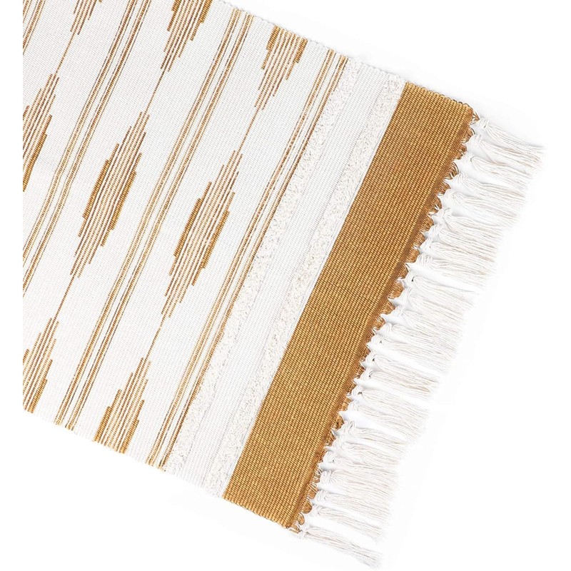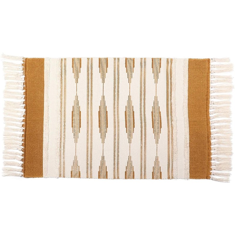 Okuna Outpost Yellow Bohemian Bathroom Rug with Tassels, Bohemian Style Mat (23.6 x 35 Inches)
