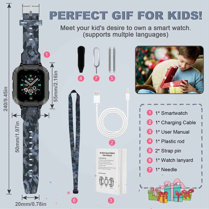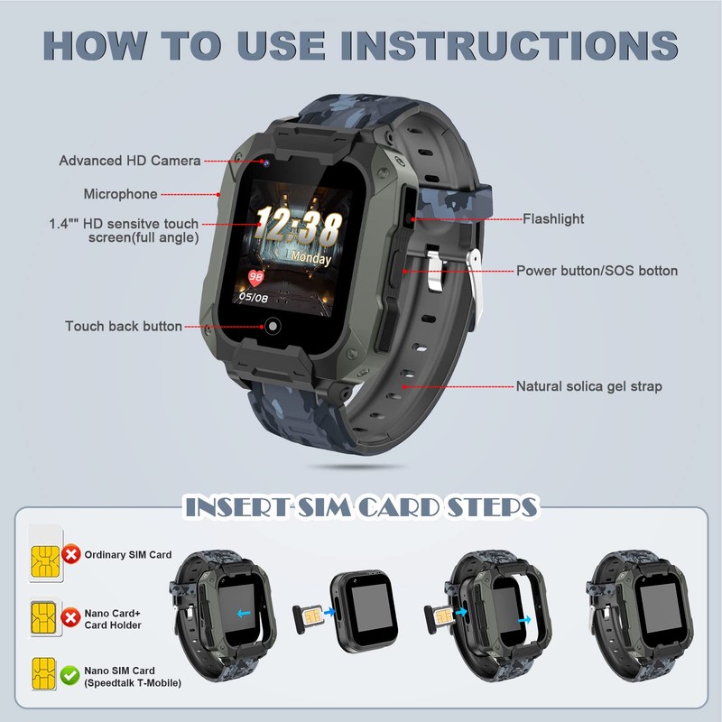 - Selfie camera and video recorder: the clear camera makes children more fun when taking photos. Turn the sweet moments when children play into never fading photos or videos that you can watch again and again. The 4G smart watch for children helps children record their happy childhood.