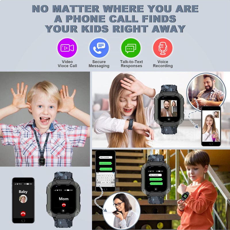 - Smart watch for children with GPS tracker and calls: GPS tracking watches for children support SMS, two-way calls, voice chats and video chats. Parents and child can call each other and know the situation of the child in time. The one-button SOS design allows children to notify their parents in time when they are in danger. Long press the SOS button. Our children's smart watch automatically dials the emergency contact number (it is required to save the contacts in advance in the address book of the smartwatch for this function to be effective).