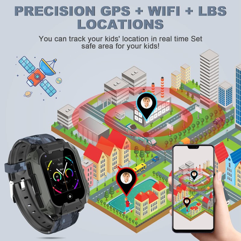 - Keep your children safe: Our GPS tracker watch for children has an integrated location with GPS + LBS + WiFi. Parents can check the child's location by tapping the app that fits the children's smartwatch with their smartphone and keep up to date with the child's location information. The children's smartphone watch app alerts you when your child leaves the designated area.