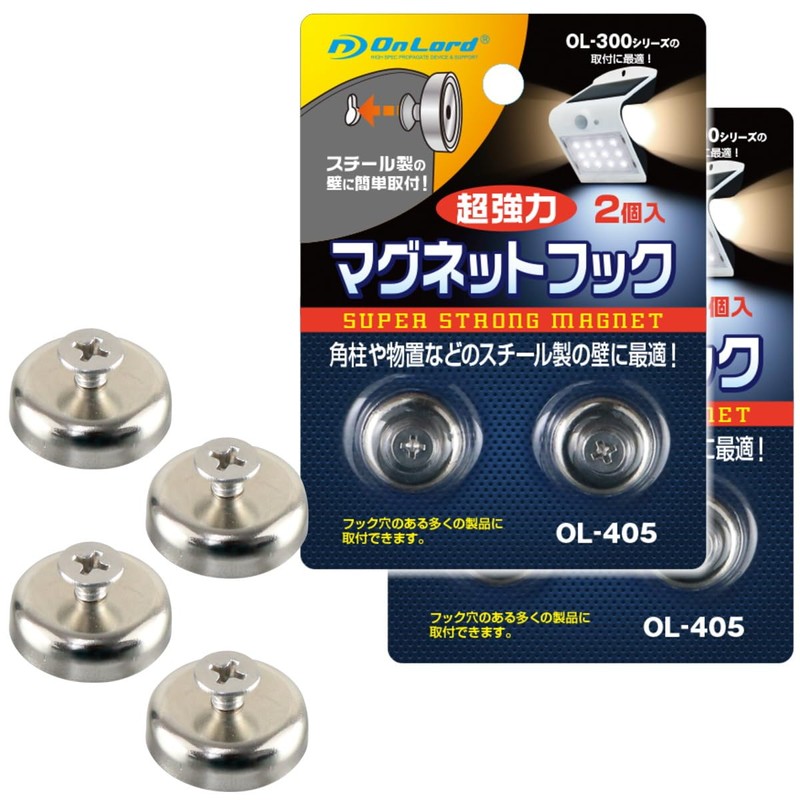 OL-405 OnLord Magnetic Hooks, 2 Pieces, Super Strong Magnets, Perfect for Sensor Light Installation