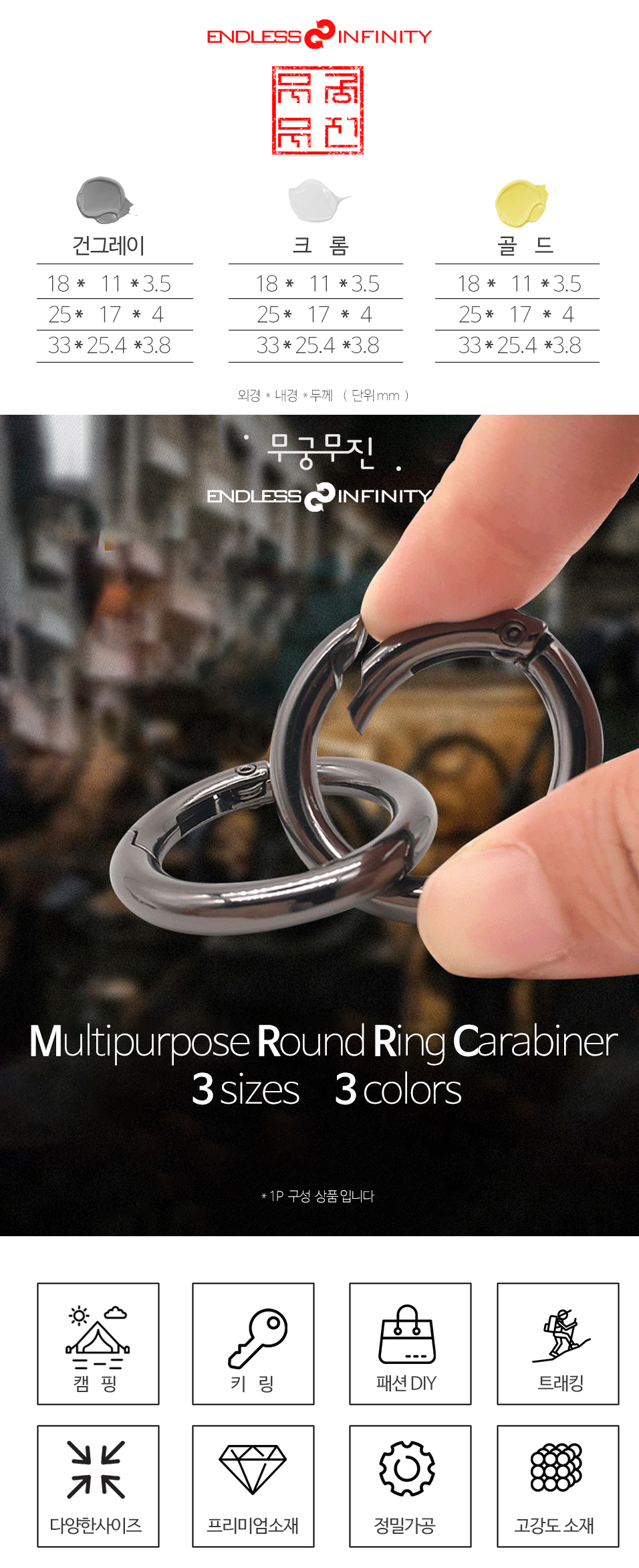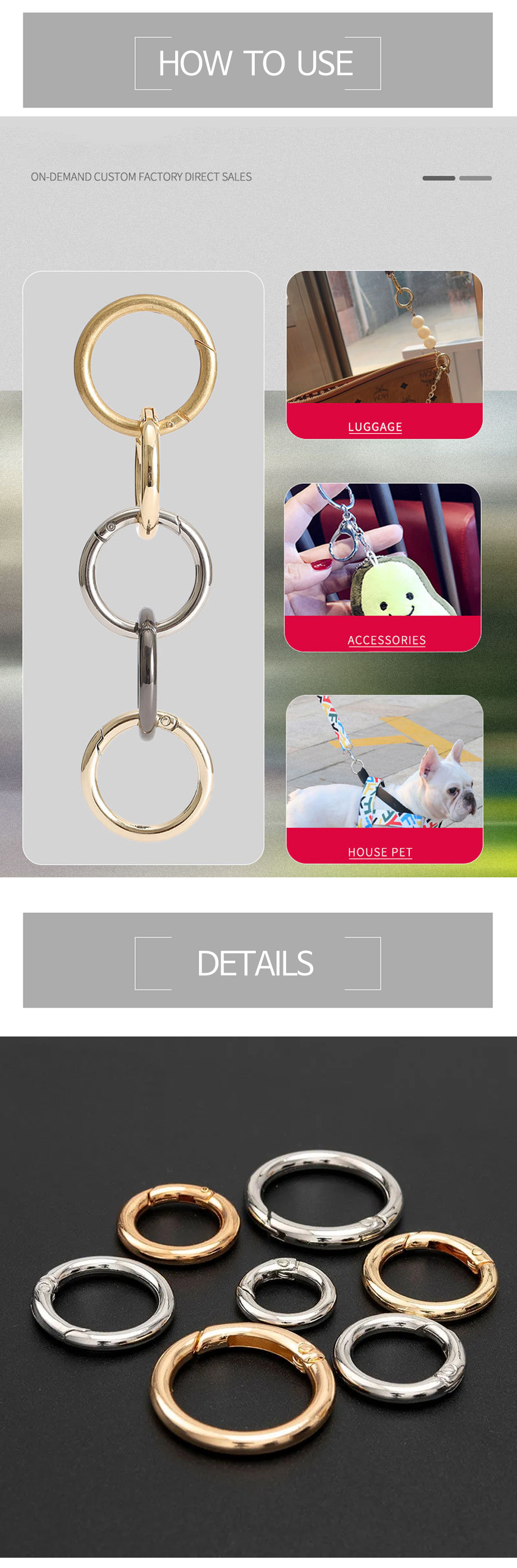 OL1286 Keyring Camping Hook Hook Accessories Circular Ring Carabiner Gold (Large) 30ea