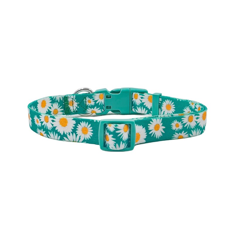 Olahibi Basic Dog Collar, Soft and Durable Polyester Material, Adjustable Length, for Medium Dogs.(M, Green Daisy)
