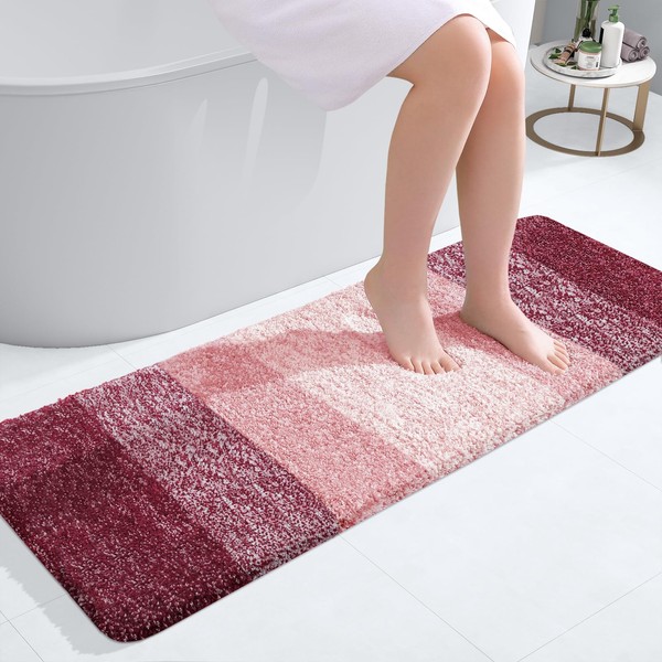 OLANLY Bathroom Rug Mat 47x17, Extra Soft and Absorbent Microfiber Bath Rugs, Non-Slip Plush Shaggy Bath Carpet Runner, Machine Wash Dry, Bath Mats for Bathroom Floor, Tub and Shower, Red