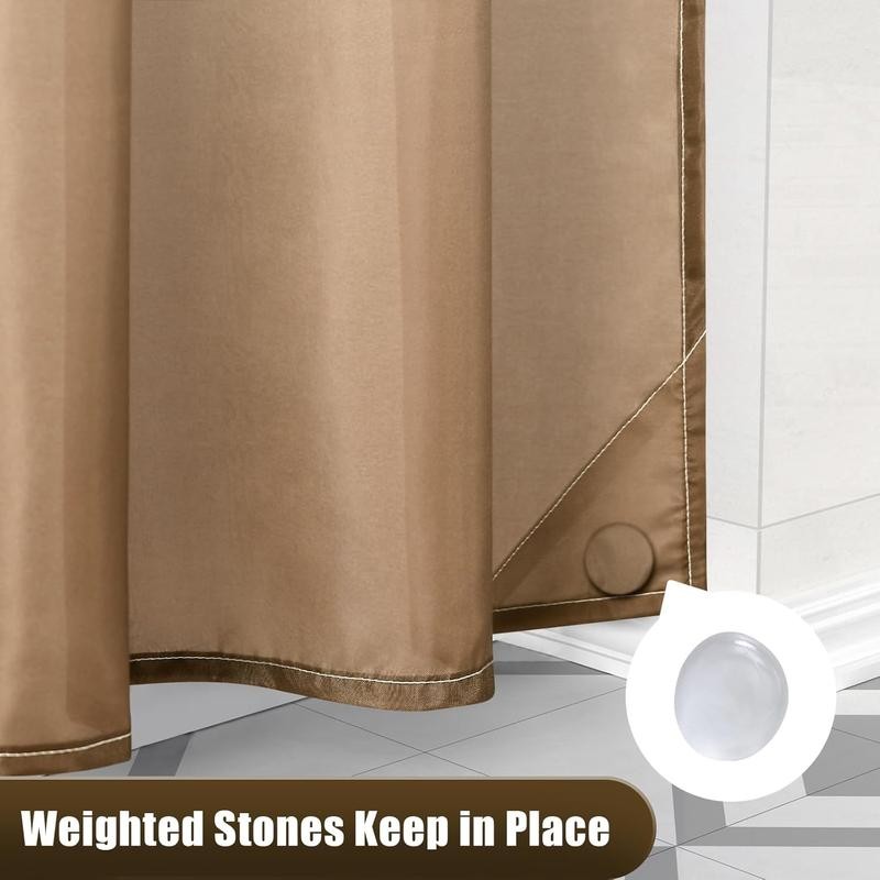 - Water Resistant: Our waterproof cloth shower curtain effectively repels water, promoting the formation of water droplets that roll off the surface, safeguarding your bathroom floor from splashes and spills for a cleaner and drier bathing experience.