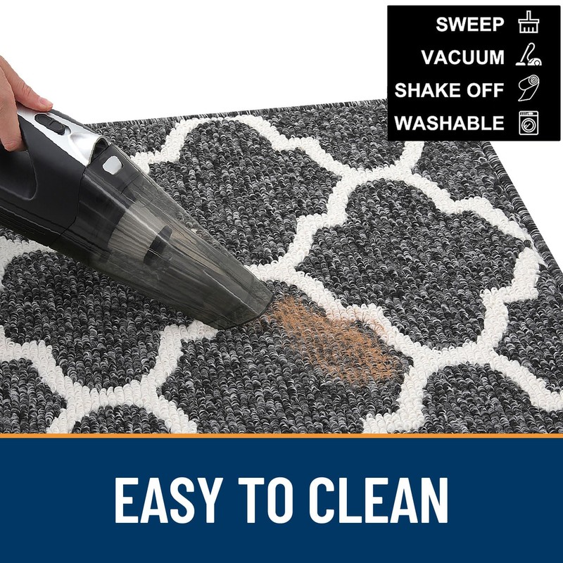 - [EFFORTLESS ELEGANCE] OLANLY's door mat features a slim 0.4-inch profile complemented by reinforced overlock edges, presenting a chic and streamlined aesthetic. The considerate design guarantees smooth door operation while keeping the mat securely in place. Cleaning is a breeze C a quick shake, a sweep with a broom, or a pass with a handheld vacuum maintains its fresh appearance. For a deeper clean, toss it in the washing machine with cold water and tumble dry on low heat.