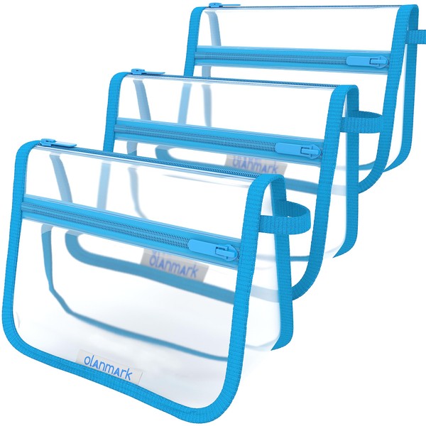 Olanmark 3 Pack TSA Approved Toiletry Bag - Quart Size Travel Bag for Toiletries - Reusable Clear Bag for Liquids - 311 Compliant Airplane Bag Blue