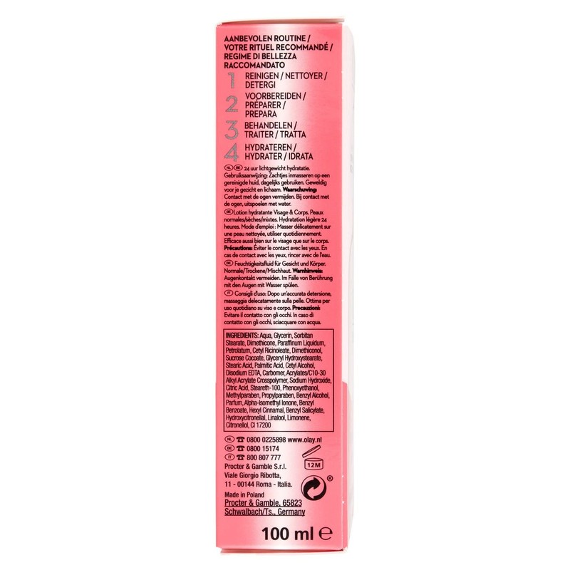 - This product contains: 1 x Olay Beauty Fluid Moisturising Lotion for Face and Body - 100 ml