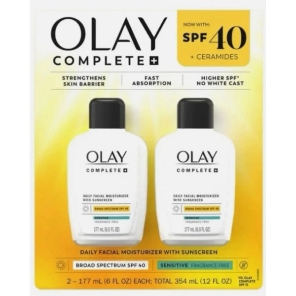 Olay Complete+ Sensitive Daily Facial Moisturizer 2 Pack SPF 40 (EXP 6/2027)
