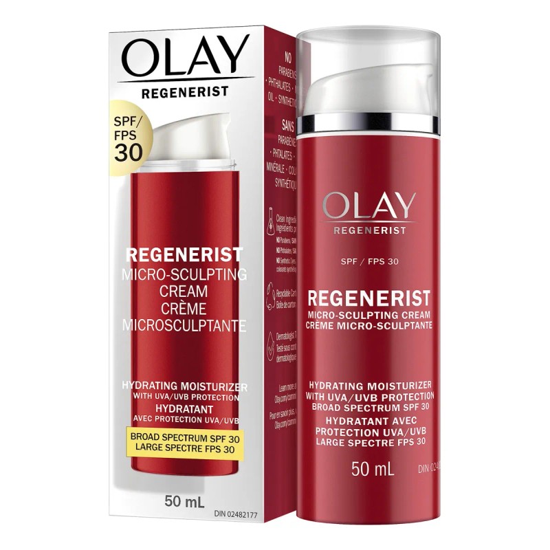 Olay Crema Hidratante Facial Regenerist Microsculpting Crea hidrata para mejorar la elasticidad y reafirmar la piel para lograr un aspecto ms firme.