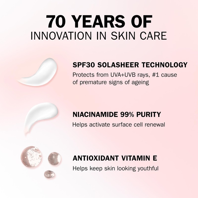 - Supercharged with Niacinamide at 99% purity that penetrates deep into skin's surface and the antioxidant Vitamin E that helps keep skin look youthful