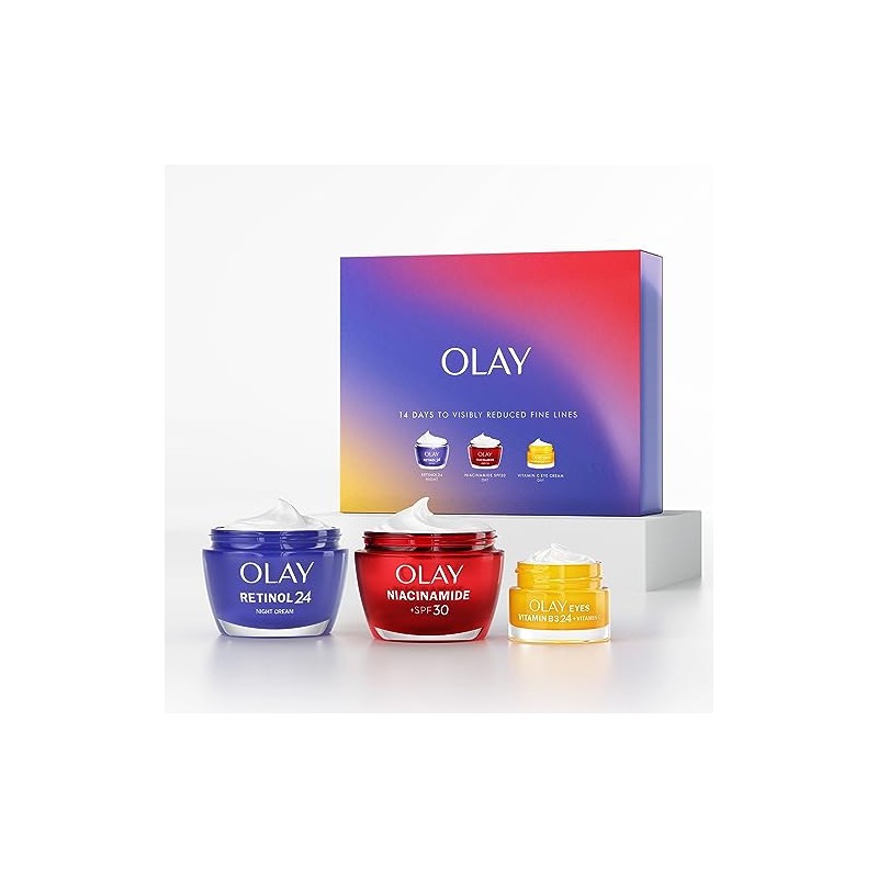 Olay Skincare Gift Set: Niacinamide SPF 30 Face Moisturiser + Retinol 24 Night Cream + Vitamin C Eye Cream For Dark Circles, Skin Care Christmas Gifts For Women 50ml + 50ml + 15ml