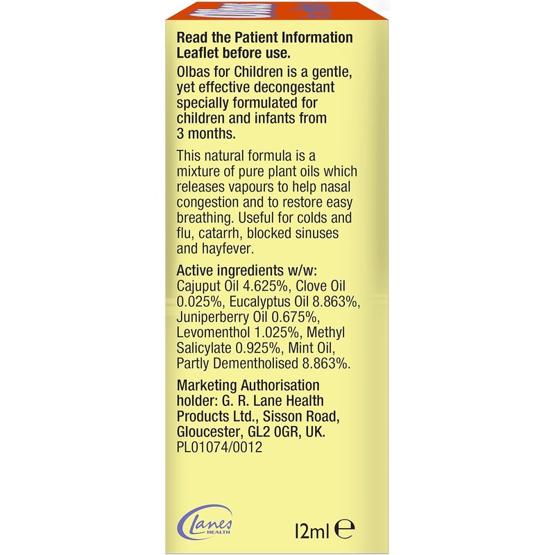 Olbas Oil For Children 12ml - Inhalant Decongestant Oil - Relief from Catarrh, Colds & Blocked Sinuses - For Children over 3 Months Old, 12 ml (Pack of 1)