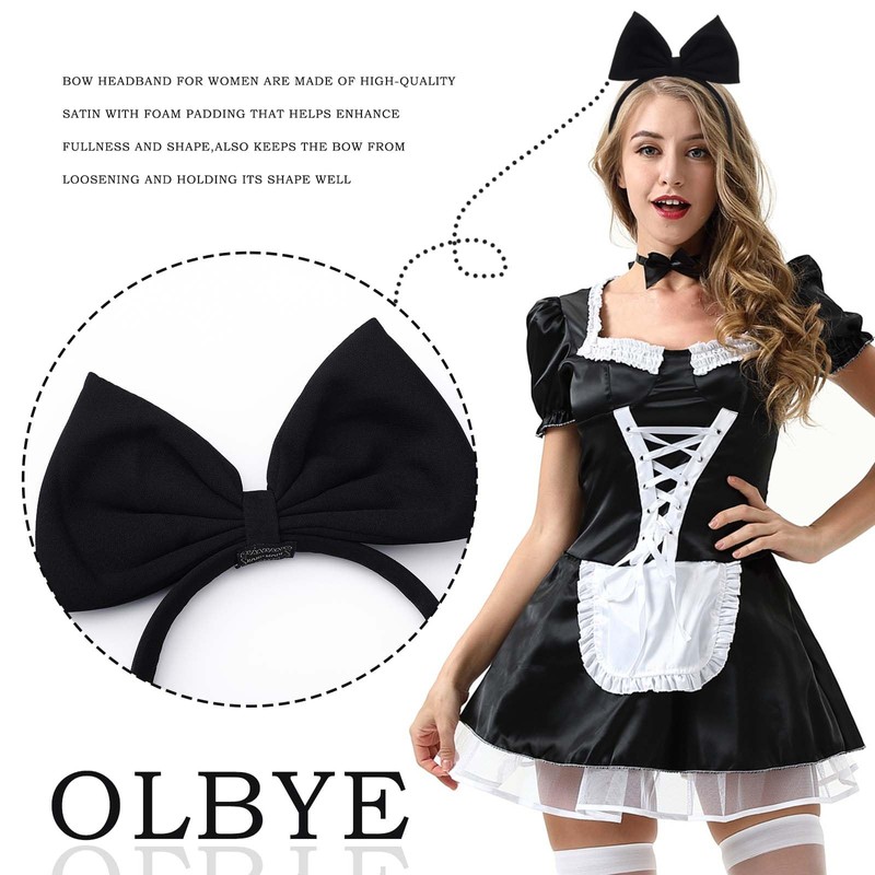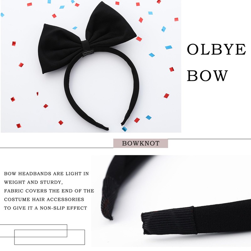 Olbye Bow Hairbands Red Headbands with Bows Big Bow Headband Bowknot Hair Bands Large Hair Bow Hair Hoop Costume Party Cosplay Hair Accessories Halloween Headbands for Women Girls (C-Black)