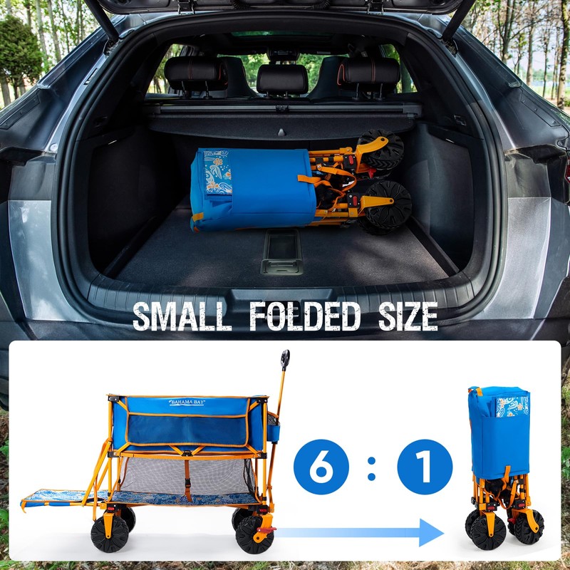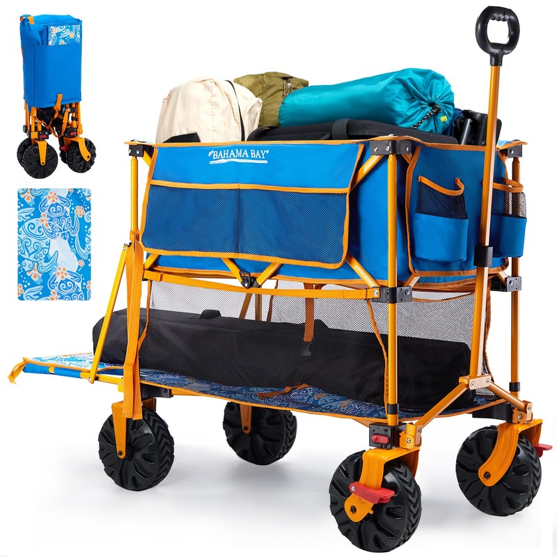 Old Bahama Bay 400L Collapsible Double Decker Beach Wagon with Brakes, Folding Beach Cart with 54" Extra Long Decker, 450LBS Heavy Duty Wagon Chart with All-Terrain Big Wheels for Sand Camping Garden
