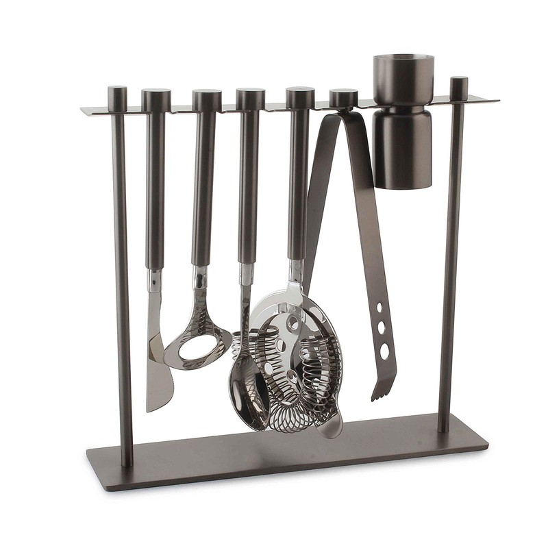 - Set includes 7 useful bar tools, includes handy stand